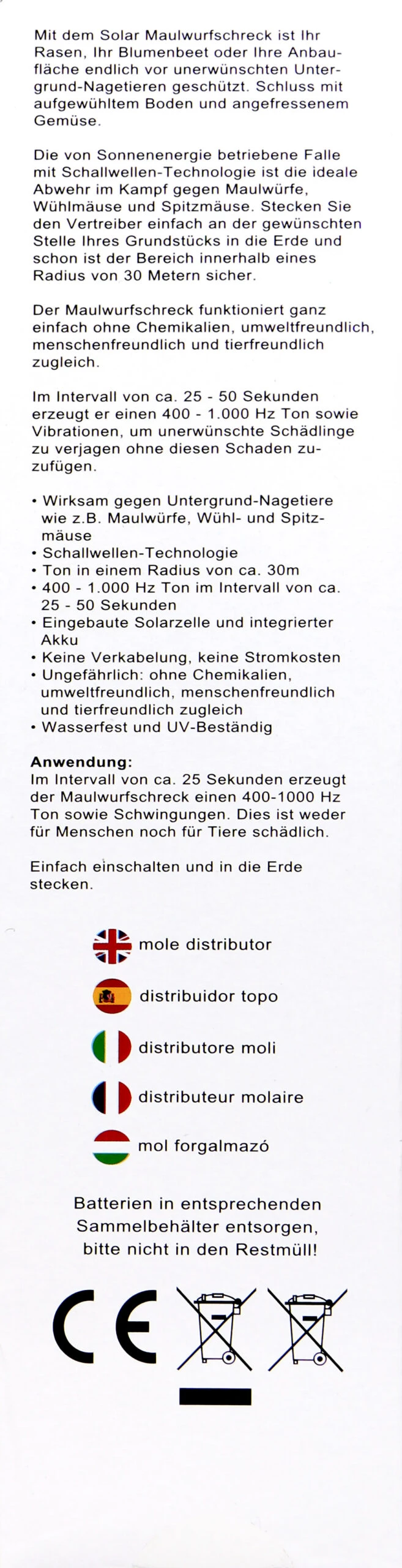 Alma Garden Solar Wühlmaus-/Maulwurf Schreck