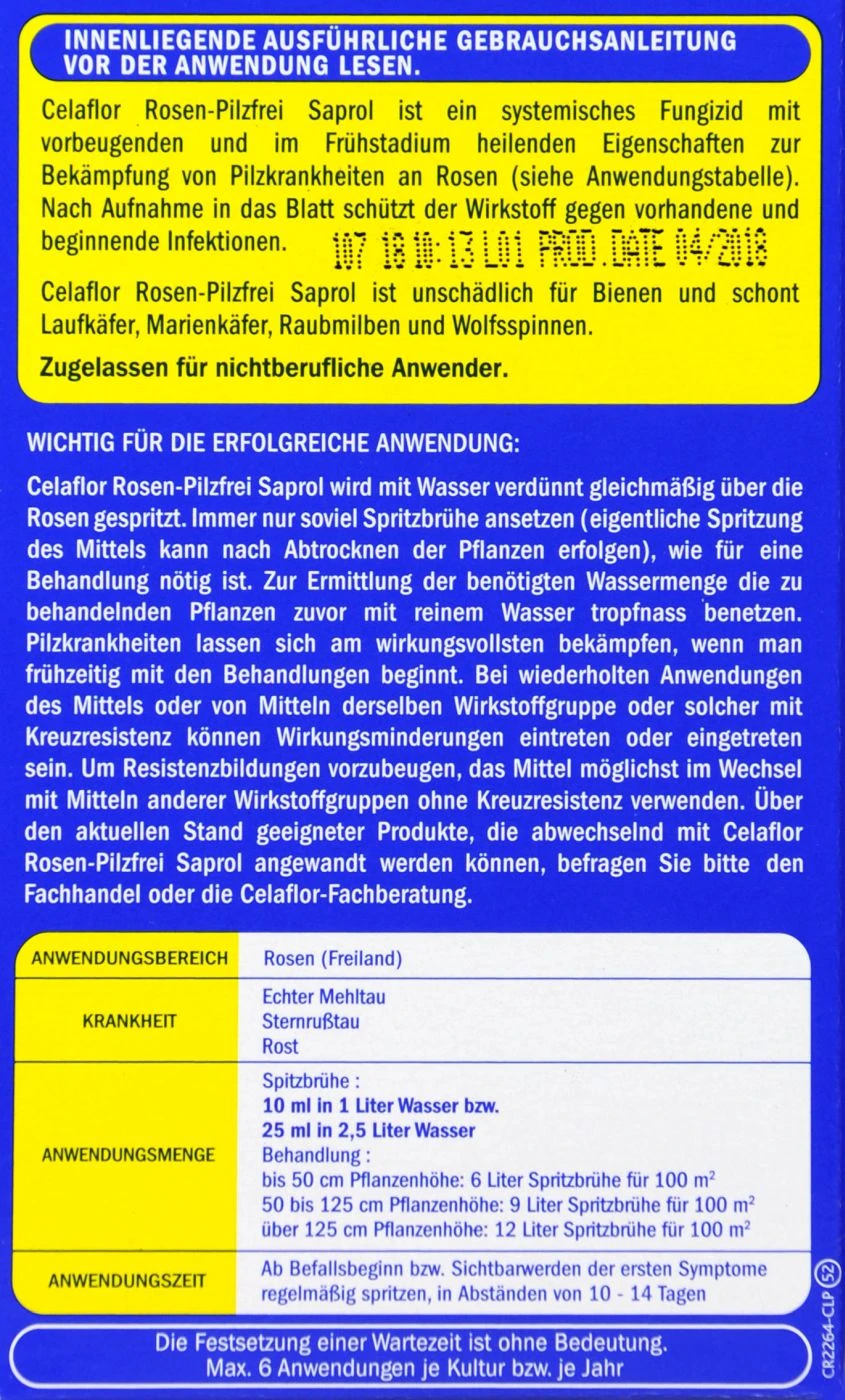 Celaflor Rosen-Pilzfrei Saprol beugt diese Krankheiten vor und heilt deine Pflanzen, wenn sie im Frühstadium erkrankt sind. Also warte nicht zu lange!