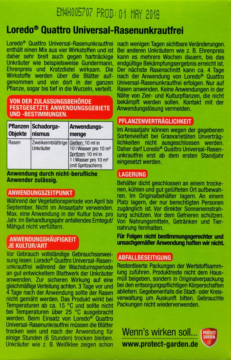 Artikelnummer: Art. Nr. 33428 Kategorien: Rasenunkrautvernichter, Unkrautvernichter Schlagwort: Protect Garden